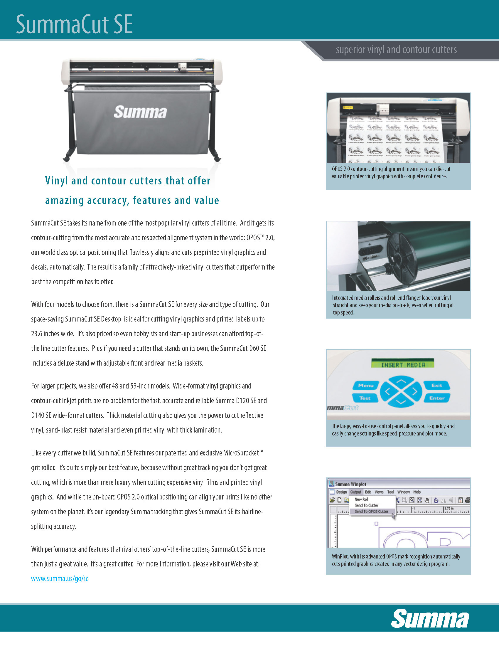 Summa is the industry leading manufacturer of of vinyl cutters and thermal transfer printers. - Concept, Design & Layout - Photo art direction, - Photo retouching and manipulation - Copywriting - Prepress