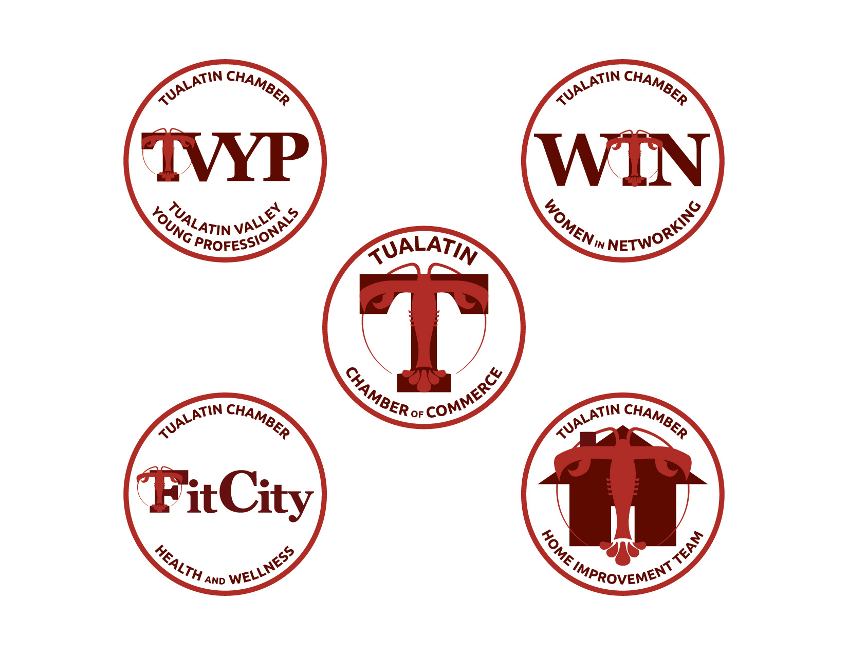 Upon moving to Oregon I joined the local Chamber of Commerce to help get acquainted to the area and meet potential clients. The Tualatin Chamber had bid dreams but was stuck with an outdated illustration for a logo that was difficult to reproduce. I immediately offered my services to update their logo and continue it to their sub-committees with a cohesive brand. Upon completion it was unanimously approved by the board and put into effect.